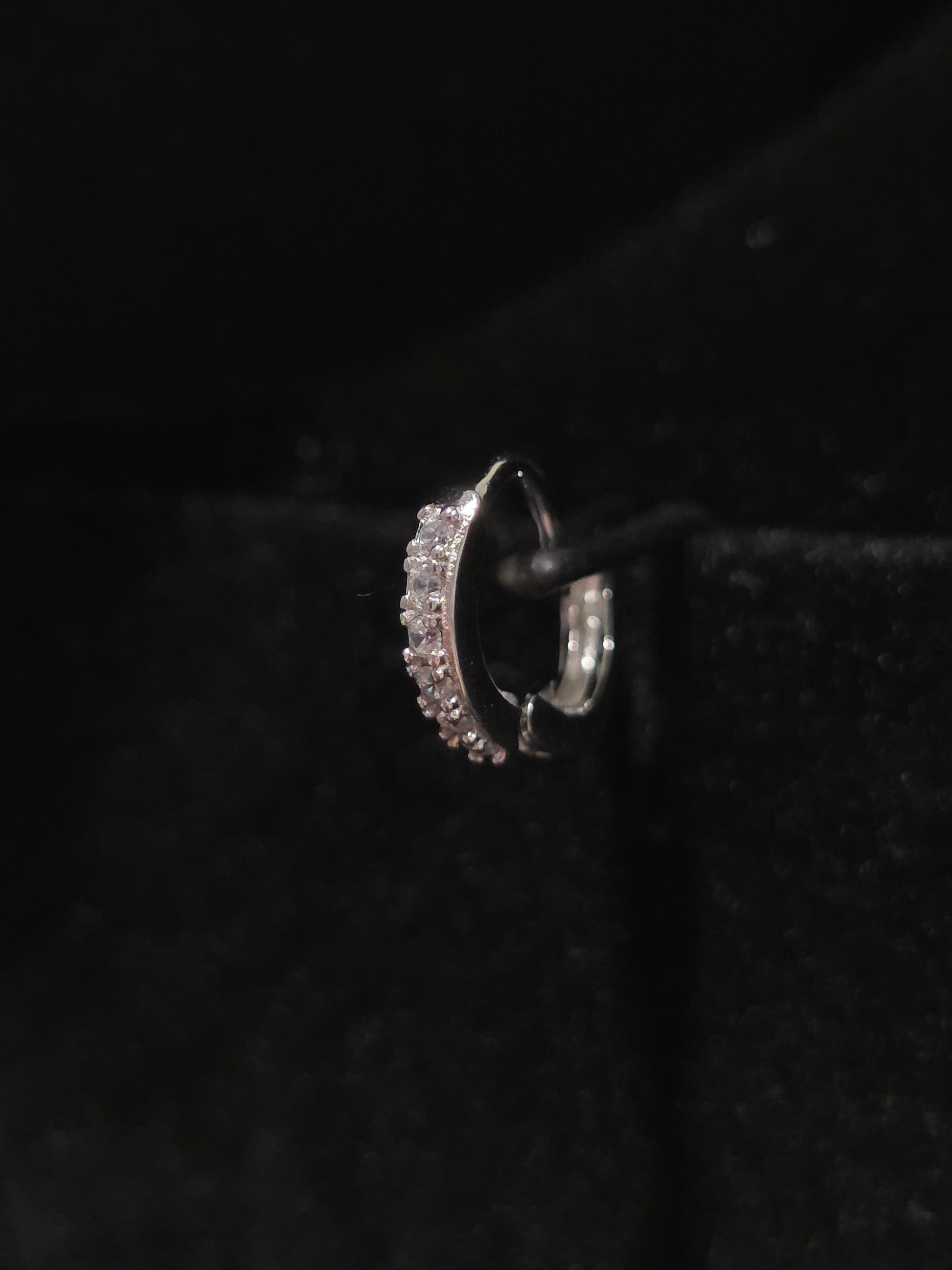 For those who love refined detail, these sterling silver hoop earrings feature brilliant cubic zirconia (CZ) stones secured in a bold prong setting, allowing maximum sparkle from every angle. Crafted from 925 sterling silver, the elevated claw-like stone setting adds a touch of classic craftsmanship to a sleek, modern silhouette.