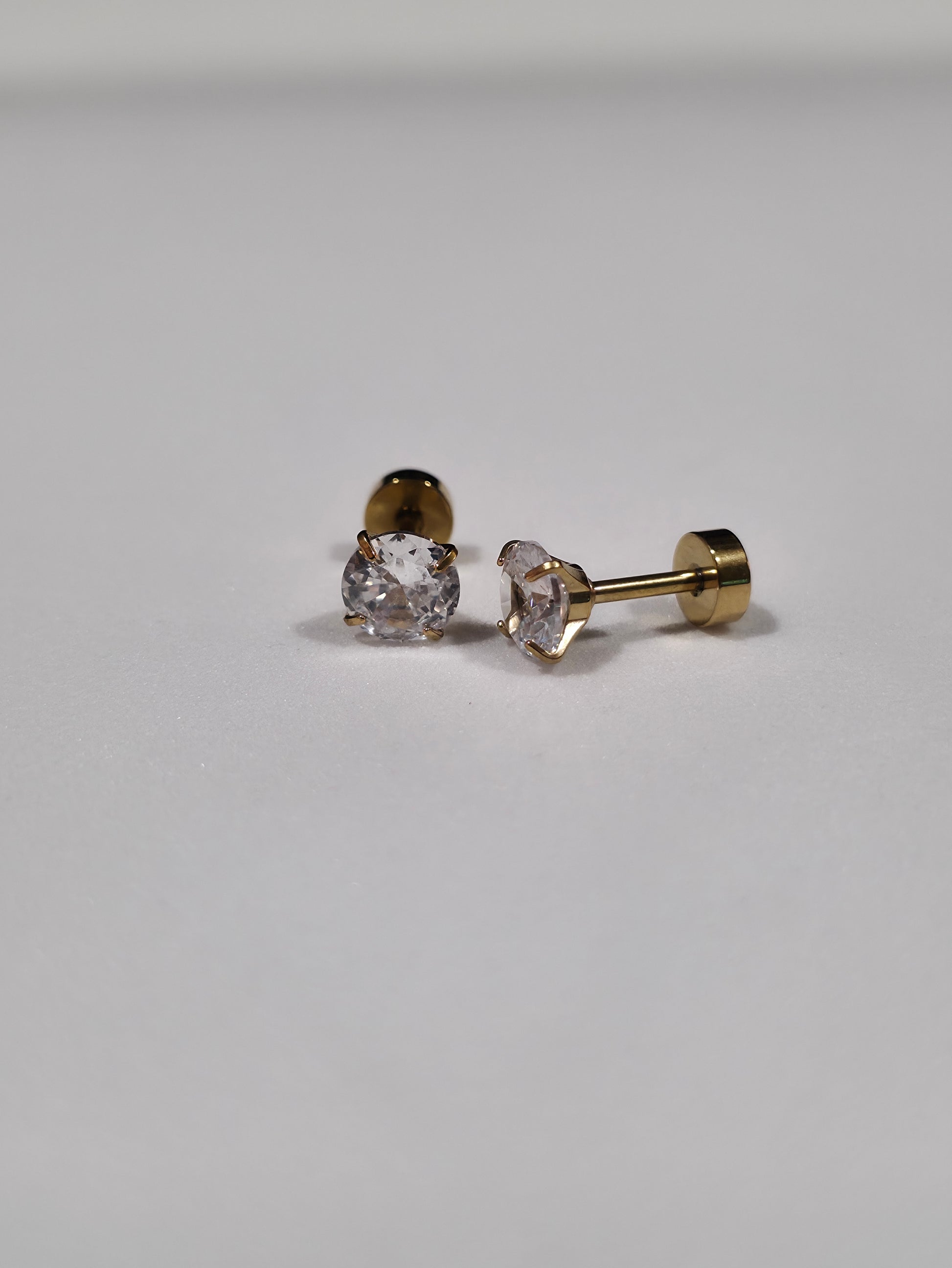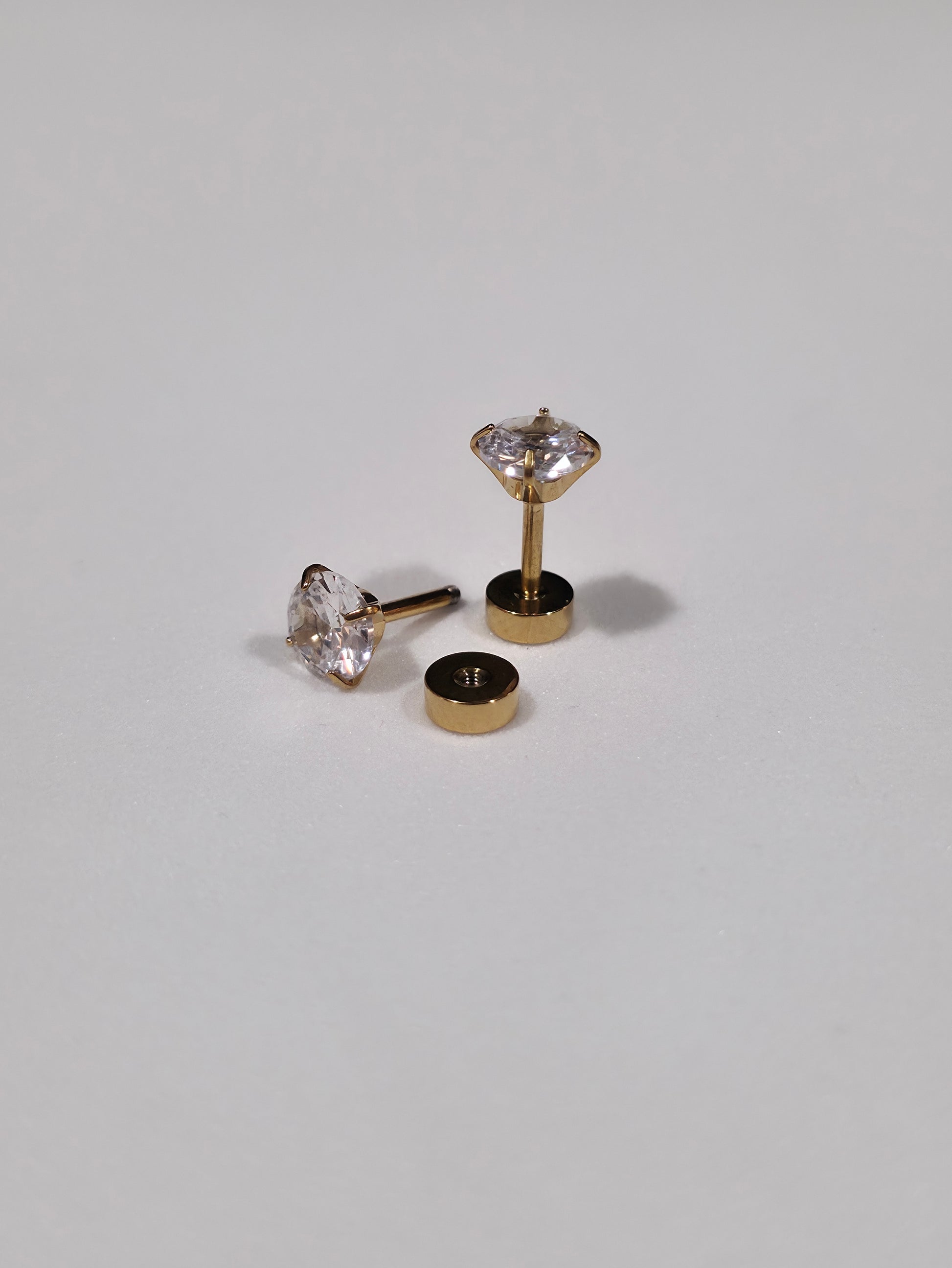 Add a touch of elegance to your everyday look with these gold-tone stainless steel screw stud earrings. Featuring a brilliant cubic zirconia stone set in a secure 4-prong setting, these earrings sparkle beautifully, catching the light from every angle.